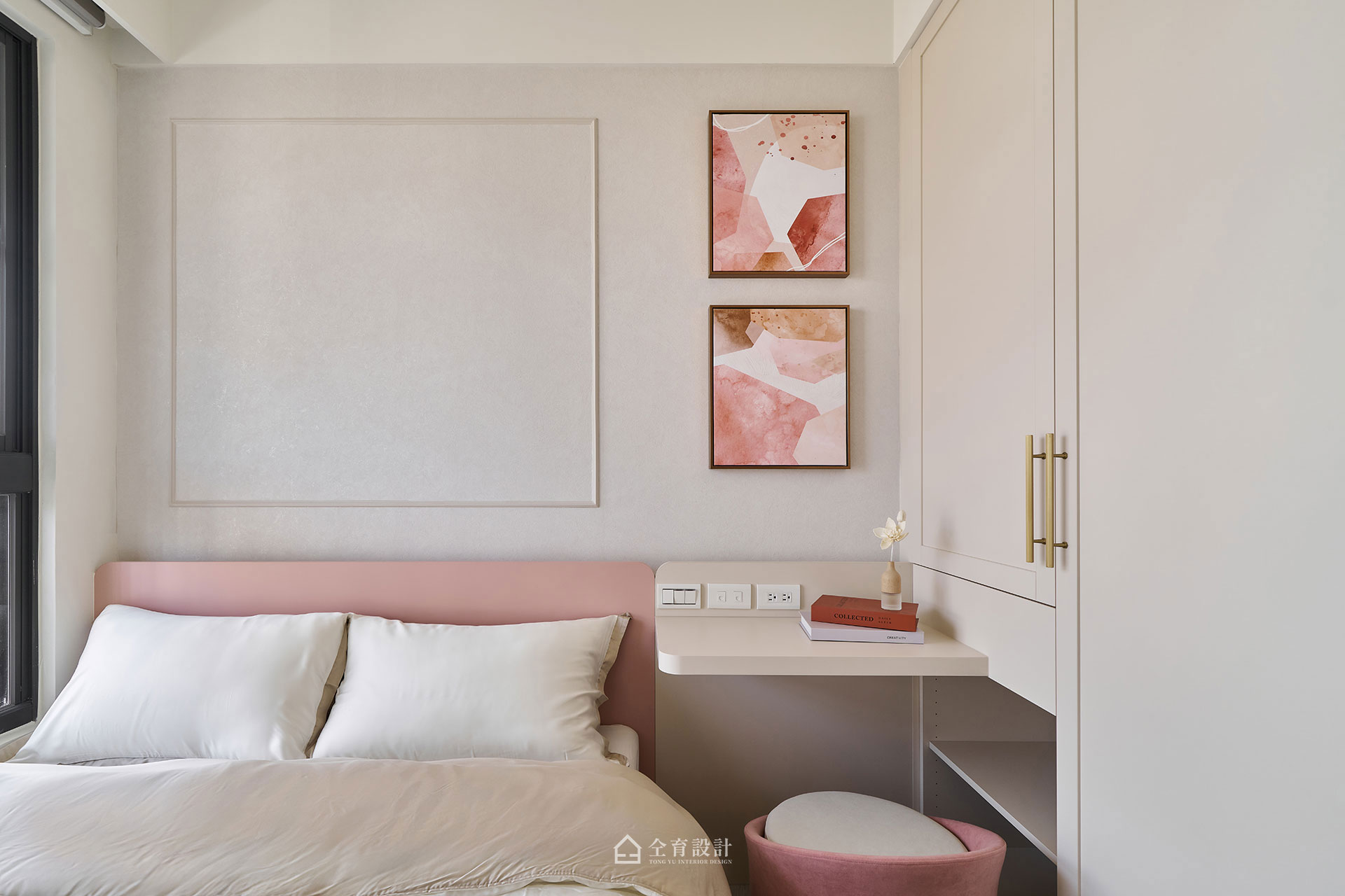 以輕古典為設計語彙,在25坪的空間裡,以奶油色調鋪陳柔和基底,線板細節與異材質相互輝映,賦予小坪數住家精緻優雅的空間氣質。