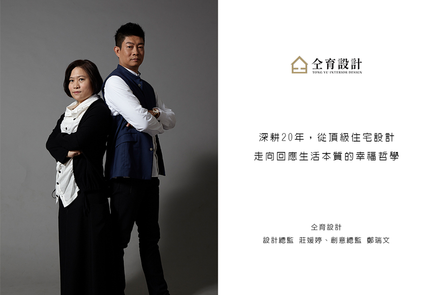 仝育設計的創辦人──莊媛婷總監與鄭瑞文總監,多年來懷抱著「透過設計,療癒人心、創造幸福」的暖心理念,將生活中汲取的美好體驗,篆刻於客戶們的理想空間之中。團隊以擅長的「形、色、質、空、光」為設計語彙,將自然元素轉化為空間層次和放鬆氛圍,歷年作品屢獲國際設計大獎肯定。