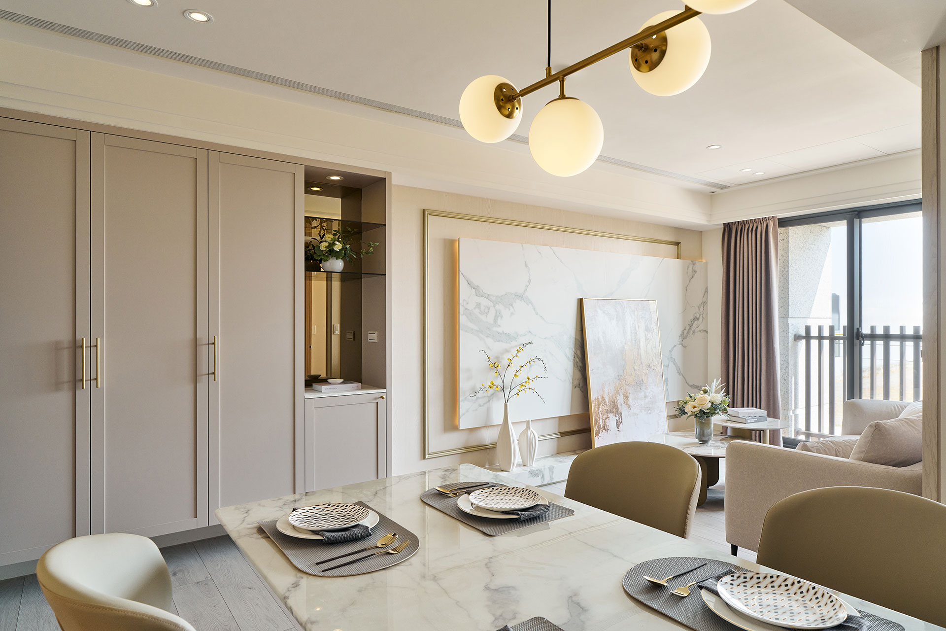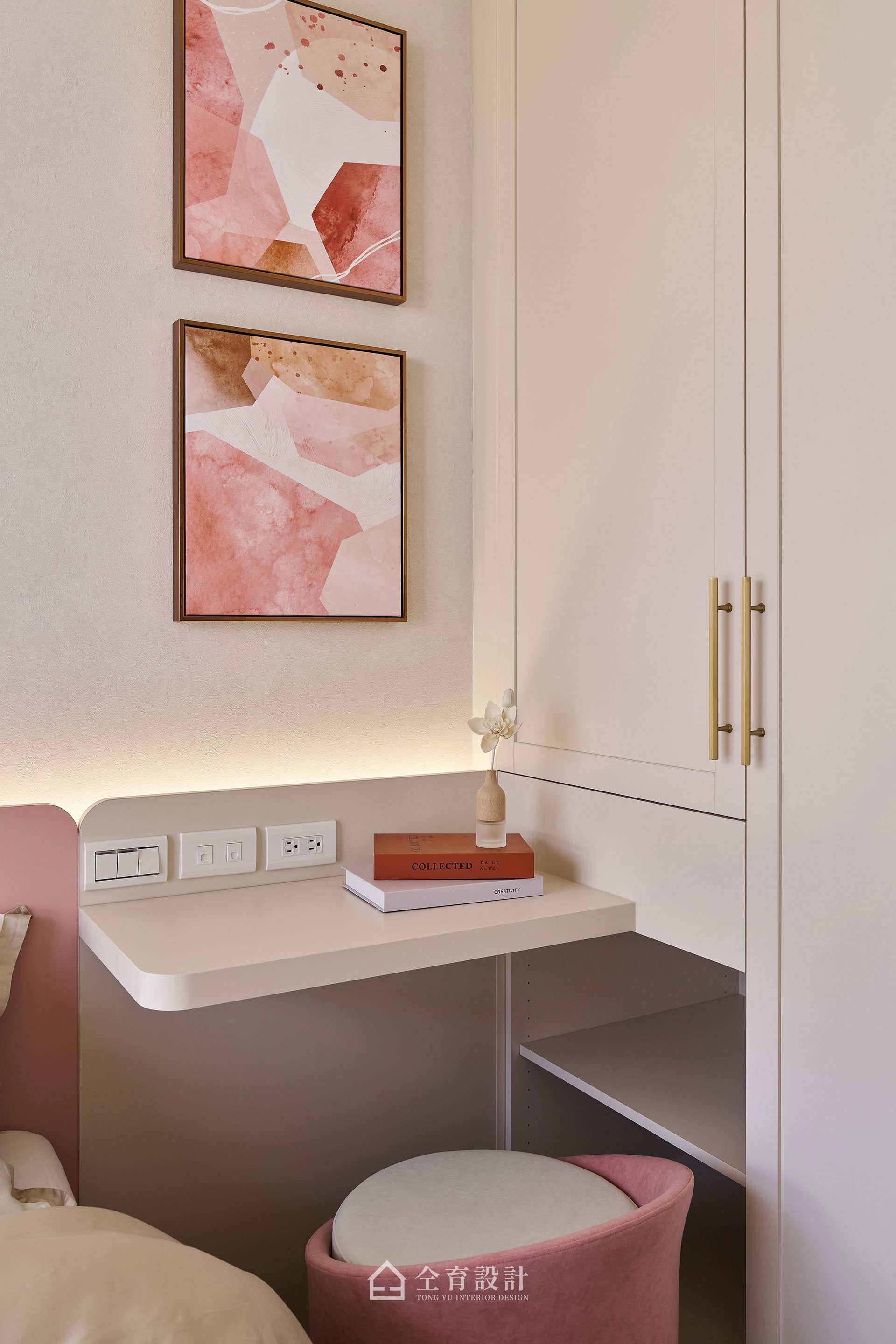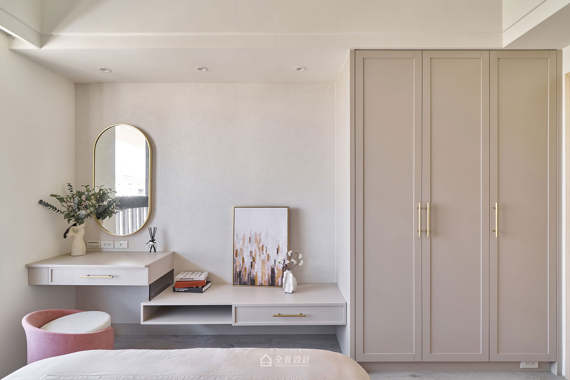 以輕古典為設計語彙,在25坪的空間裡,以奶油色調鋪陳柔和基底,線板細節與異材質相互輝映,賦予小坪數住家精緻優雅的空間氣質。